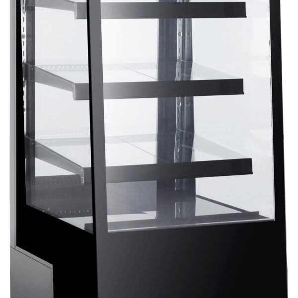 • Obudowa ze stali nierdzewnej z podwójnymi szybami• Dostęp do wnętrza przez tylne, dwuczęściowe przesuwne drzwi• Wyposażona w 3 przestawne lekko nachylone w stronę klienta szklane półki• Chłodzenie wymuszone z automatyczym rozmrażaniem, kompresor umieszczony pod komorą• Jasne oświetlenie LED na górze i pod każdą półką• Wyposażona w 4 kółka, w tym 2 z hamulcami• Cyfrowy termostat i wyświetlacz• Zakres temperatury: 2 - 6°C• Klasa klimatyczna: 4• Czynnik chłodniczy: R290
