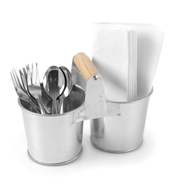 Wiaderko wykonane z ocynkowanej blachy stalowej, w stylu rustykalnym. Stal ocynkowana nie jest przeznaczona do kontaktu z żywnością, do serwowania potraw należy używać papieru pergaminowego - dostępnego w ofercie Hendi. Naczyń wykonanych z ocynkowanej blachy stalowej nie należy myć w zmywarce.