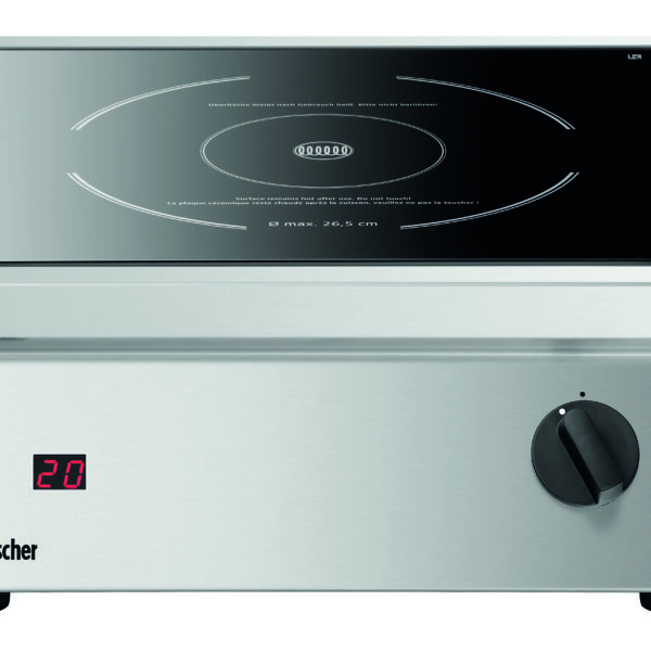 Płyta indukcyjna z jednym polem grzewczym o mocy 3 kW: • Materiał: stal szlachetna• Materiał powierzchni grzewczej: szkło• Moc pola grzewczego: 3000 W• Ilość stopni mocy: 20• Lampka kontrolna: wł./wył., przegrzanie• Wyświetlacz cyfrowy• Średnica pola grzewczego: 265 mm• Wymiary: 400 x 455 x 160 mm• Moc przyłączeniowa: 3 kW | 230 V | 50/60 Hz• Waga: 8,8 kg• Prosimy sprawdzić przydział mocy dla obiektu, w którym będzie pracować urządzenie