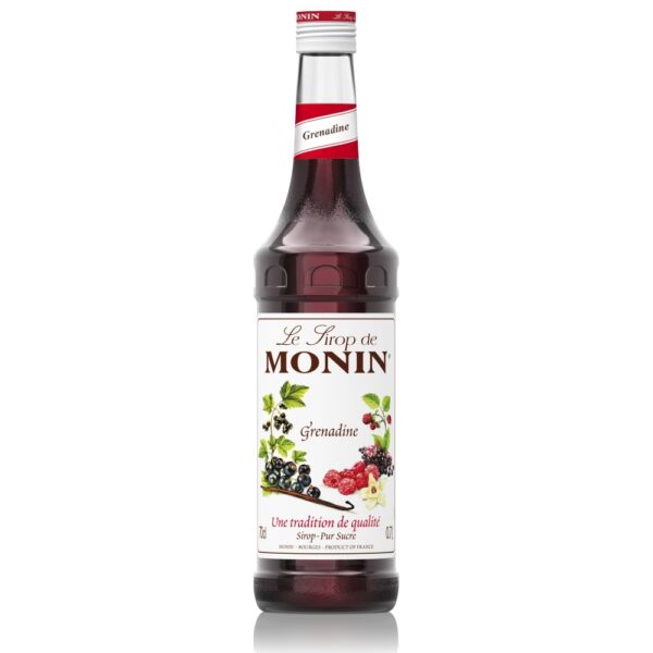 Grenadine jest jednym z najbardziej powszechnych oraz wszechstronnych syropów słodzących, używanych podczas przygotowywania klasycznych drinków. Chociaż ciężko w to uwierzyć, nie ma on nic wspólnego z syropem z owoców granatu. Wiele koktajli zawiera Grenadine. Posiada on czerwony kolor oraz słodki, lekko kwaskowy smak, który jest bardzo popularny wśród dzieci i dorosłych. Syrop MONIN Grenadine ma smak czerwonych jagód z nutką wanilii oraz jasnoczerwony kolor, który wzbogaca napoje alkoholowe, koktajle a nawet desery, marynaty oraz wiele innych przepisów. BARWA: Błyszcząco czerwony z pomarańczowymi akcentami SMAK: Delikatnie kwaśny smak. Subtelne połączenie delikatności wanilii oraz kwaśności czerwonych jagód ZASTOSOWANIA: Od Shirley Temple do Tequilla Sunrise, wiele klasycznych drinków ma w swoim składzie syrop Grenadine, który pozwala im uzyskać głęboki, czerwony kolor. Lubiany jest też w połączeniu z wyaromatyzowanymi napojami gazowanymi w połączeniu ze smakiem owocowym, takim jak np. syrop MONIN Passion Fruit. Zapewnia to słodki i świeży smak. Koktajle z alkoholem, moctajle, napoje gazowane, lemoniady