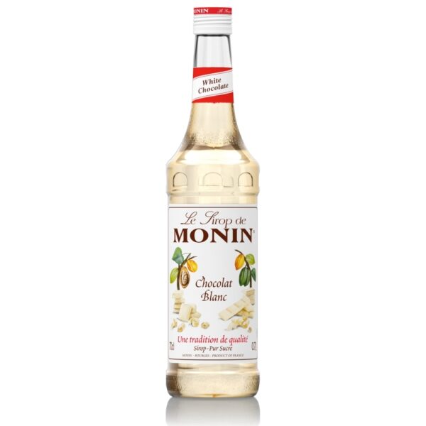 W odróżnieniu od „czekolady" (tj. czekolady mlecznej lub gorzkiej), bogaty, maślany smak białych czekolad nie pochodzi od samych ziarenek kakao lecz od masła kakaowego. Słodki, subtelny smak białej czekolady doskonale uzupełnia i wzmacnia inne smaki. Idealna do robienia kawy mokka lub wzmacniania chłodzonych oraz mrożonych kaw z mlekiem skondensowanym, cappuccino, espresso, smakowych milkshake'ow, czekolad... Biała czekolada MONIN zadowoli wszystkich. BARWA: Bardzo przejrzysta, złota SMAK: Maślany zapach z nutką wanilii, kremowy kakaowy smak ZASTOSOWANIA: Kawy, koktajle, napoje deserowe, milkshake'i