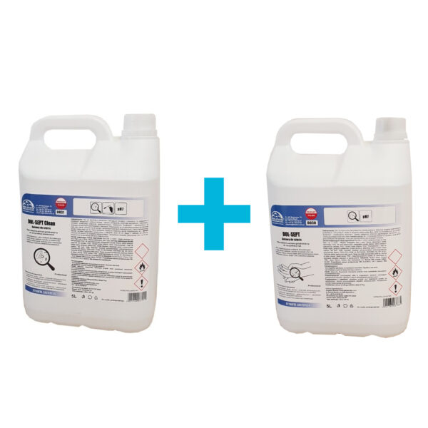 [Zestaw] Płyn do dezynfekcji powierzchni 5 l i płyn do dezynfekcji rąk 5 l, bakterio-wiruso-grzybobójcze | DOLPHIN
