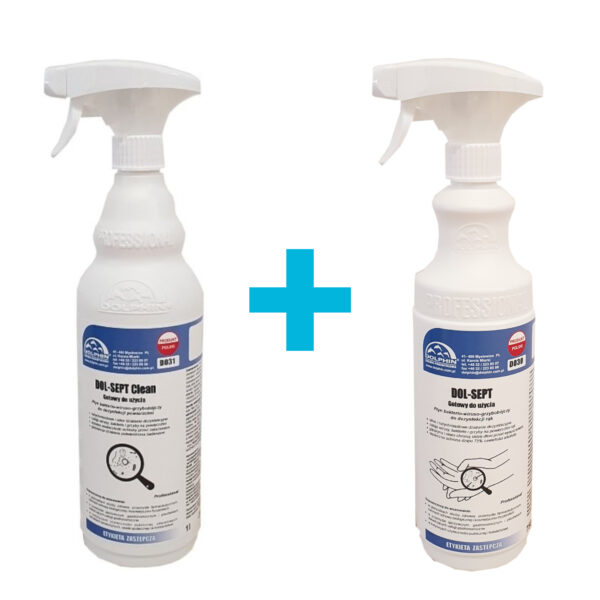 [Zestaw] Płyn do dezynfekcji powierzchni 1 l i płyn do dezynfekcji rąk 0,75 l, bakterio-wiruso-grzybobójcze | DOLPHIN