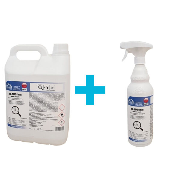 [Zestaw] Płyn bakterio-wiruso-grzybobójczy do dezynfekcji powierzchni butelka z atomizerem 1 l + kanister 5 l | DOLPHIN, Dol-Sept Clean