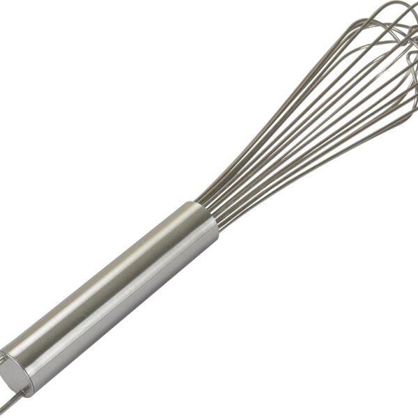 Rózga do mieszania z uchwytem • Wykonana ze stali nierdzewnej • Posiada 8 twardych wrzecion o grubości 2,2 mm • Długość rączki wynosi 130 mm, a jej średnica to 25 mm • Uchwyt posiada wygodną zawieszkę • Można myć w zmywarce