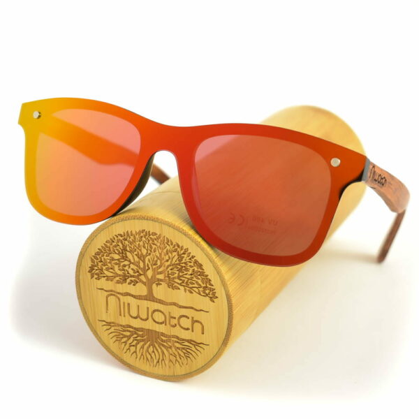 Drewniane okulary przeciwsłoneczne Niwatch Orion Orange Mirror