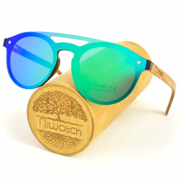 Drewniane okulary przeciwsłoneczne Niwatch Volans Green Mirror