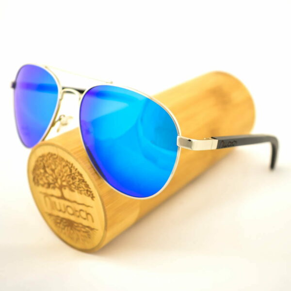 Drewniane okulary przeciwsłoneczne Niwatch Musca Blue Mirror