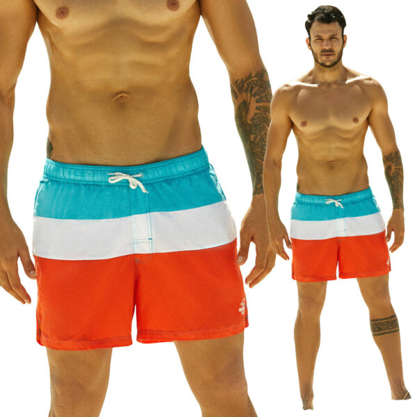 Niesamowicie modne kąpielówki męskie wykonane w stylu surferskim. Wakacyjne kolory na szortach idealnie będą współgrać z opalonym, męskim ciałem. Klasyczny fason zapewni komfort i maksymalną funkcjonalność podczas wodnych wyzwań, a sznurowanie w pasie pozwoli na idealne dopasowanie. Polecamy zarówno na plażę jak i basen.