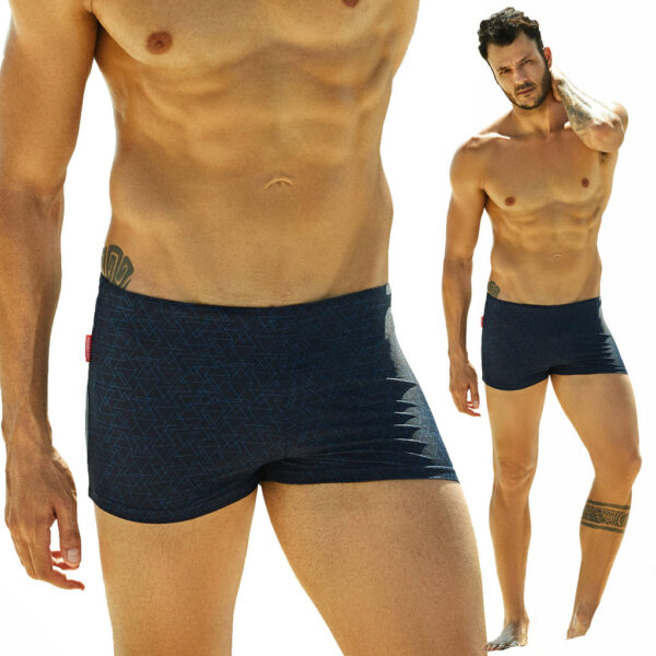 Kąpielówki męskie marki Henderson wyprodukowane zostały z szybkoschnącego i miękkiego w dotyku materiału. Materiał ten cechuje się idealnym dopasowaniem do ciała. Komfort podczas wodnych wyzwań zapewniają siateczkowe slipy znajdujące się wewnątrz stroju kąpielowego. Wykonane w klasycznym czarnym kolorze z ciekawym geometrycznym wzorem . Elastyczny pas z regulowanym sznurkiem wewnątrz pozwala na indywidualne dopasowanie wielkości. Klasyczny fason bokserek świetnie sprawdza się zarówno podczas wypoczynku na plaży, jak i na basenie.