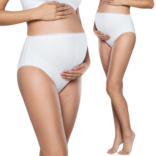 Majtki damskie zakrywające brzuch wykonane z miękkiej i miłej w dotyku bawełny, która dostosowuje się do zmieniającego, powiększającego się brzucha kobiety w ciąży. Mają uniwersalny krój, są bardzo estetycznie wykończone. Majtki idealnie sprawdzają się w ciąży. Materiał po praniu zachowuje swoją elastyczność i wygląd. Dzianina zapewnia wygodę - majtki nigdzie nie uwierają. Biustonosz widoczny na zdjęciu dostępny na innej naszej aukcji. Skład: materiałowy: 90% bawełna 10% elastan.