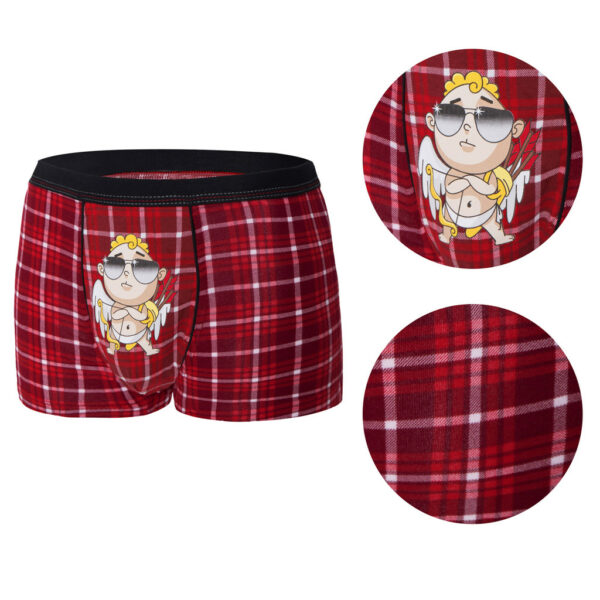 Bokserki męskie w kratkę, z kupidynem. Idealne na prezent na Walentynki i nie tylko! Skład: 95% bawełna 5% elastan (lycra).