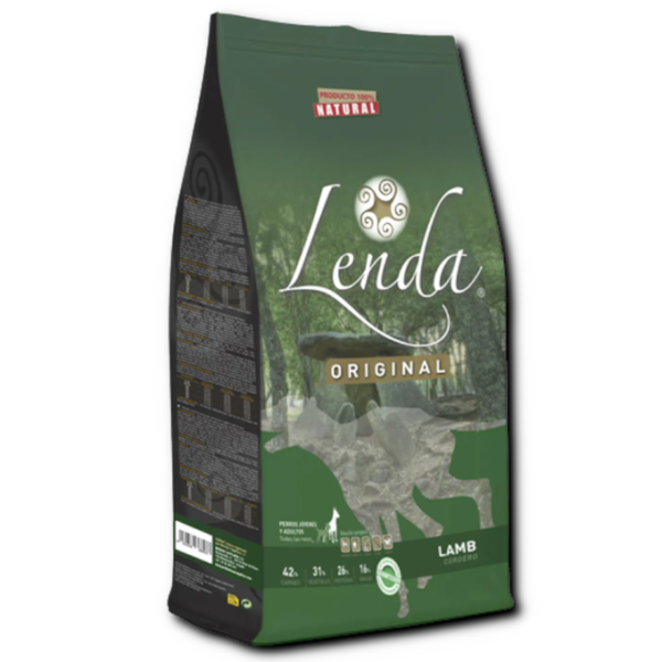 Psy młode i dorosłe - wszystkie rasyLenda Original Lamb to naturalna karma przeznaczona do codziennego karmienia młodych i dorosłych psów, które potrzebują alternatywnego białka. Jego źródłem białka jest jagnięcina, a także pakiet ochraniaczy stawów i ziół leczniczych, które pomagają zapobiegać problemom ze stawami i poprawiają układ trawienny.Nie zawiera pszenicy, czerwonego mięsa mlecznego ani soi (żywność silnie alergizująca)SkładnikiOdwodnione białka (odwodnione białko jagnięce 24%, odwodnione białko z kurczaka 10%), cała kukurydza *, filtrowany tłuszcz z kurczaka, cały ryż * 9%, hydrolizowany drób 8%, skrobia ziemniaczana, pulpa buraczana, olej rybny (źródło Omega 3 i 6) , substancje mineralne, wyciąg z drożdży piwowarskich (Saccharomyces cerevisiae, MOS Prebiotics), suszone warzywa (pomidor, marchew,…), ekstrakt z cytrusów (źródło naturalnych przeciwutleniaczy), siarczan glukozaminy, siarczan chondroityny, MSM (metylosulfonylometan), korzeń cykorii wyciąg (FOS Prebiotics), ekstrakt z juki, wyciąg z ziół leczniczych (Melissa officinalis, Minthostachys verticillata, Cinnamomum verum, Rosmarinus officinalis, Gentiana, Vaccinium macrocarpon). * Naturalne surowce.DodatkiDodatki dietetyczne: siarczan glukozaminy 1000 mg / kg, siarczan chondroityny 1000 mg / kg, MSM (metylosulfonylometan) 400 mg / kg. Pierwiastki śladowe: żelazo (jako węglan żelaza (II)) 195 mg / kg, jod (jako jodek potasu) 2,2 mg / kg, miedź (jako pentahydrat siarczanu miedzi (II)) 13 mg / kg, mangan (jako tlenek manganu) ) 44,5 mg / kg, cynk (jako tlenek cynku) 188 mg / kg, selen (jako selenin sodu) 0,33 mg / kg, dodatki technologiczne: naturalne konserwanty i przeciwutleniacze (ekstrakt z cytrusów i tokoferole).Analiza treściBiałko surowe 26%, oleje i tłuszcze surowe 16%, popiół surowy 6,5%, włókno surowe 2%, wilgotność 10%, sód 0,4%, wapń 2,4%, fosfor 1,6%, witamina A 16000 IU / KG, witamina D3 1550 IU / KG, witamina E (α-tokoferol) 110 mg/kg