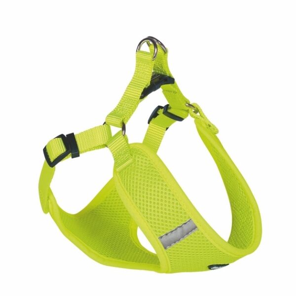 Szelki Nobby Mesh Reflect to uprząż dla psa w kilku neonowych kolorachProdukt został zaprojektowany tak, by przede wszystkim był wygodny w użytkowaniu. Otwory na łapy zostały dostosowane odpowiednio do konkretnych rozmiarów szelek, będą pasować zarówno dla małego jak i średniego pieska jak np. beagle. Ponadto wykończenie szelek jest miękkie i przyjemne w dotyku, nie powinno więc powodować otarć na łapach czy skórze psa. Szelki nie są przystosowane dla psów ras dużych, takich jak owczarek niemiecki czy golden retriever. Sprawdzą się doskonale dla psów ras małych i średnich. Wykonane zostały z oddychającego materiału z miniotworami, dzięki czemu będą odpowiednie także na upalne dni. Ponadto materiał, z którego został wykonany produkt jest szybkoschnący, dzięki czemu pies może zażywać w nich kąpieli. Szelki Nobby Mesh Reflect są niezwykle łatwe do czyszczenia, bez problemu można umieścić je w pralce i odeprać wszelkie powstałe podczas spacerów zabrudzenia. Produkt posiada dwa regulowane paski, dzięki czemu można dokładnie dopasować uprząż do gabarytu psa z obu stron. Miękkość materiału zapewnia idealne dopasowanie do kształtu ciała pupila. Odblaskowe elementy zapewniają bezpieczeństwo i widoczność na spacerze. Dostępne rozmiary:XXS szerokość pasków 10mm, paski boczne dł: 28-33cm, obwód 32cmXS szerokość pasków 10mm, paski boczne dł: 33-41cm, obwód 37cmS szerokość pasków 10mm, paski boczne dł: 41-46 cm, obwód 42 cmM szerokość pasków 15mm, paski boczne dł: 48-56cm, obwód 50cmL szerokość pasków 20mm, paski boczne dł: 58-69cm, obwód 54cm