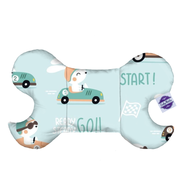 Poduszka „motylek” ma specjalny kształt, który pozwala zminimalizować wstrząsy, jakie powstają w czasie jazdy po nierównym terenie, dzięki stabilizacji główki dziecka. Środek poduszki jest wypełniony w mniejszym stopniu niż jej boczne części, co pozwala na ułożenie główki dziecka w bezpiecznej pozycji. Jedna strona poduszki wykonana jest z bawełny z certyfikatem Oek-Tex Standard 100, druga to mięciutkie minky. W środku znajduje się antyalergiczne wypełnienie silikonowe.