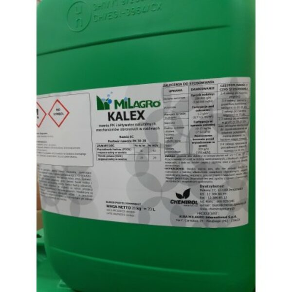 KALEX to specjalny płynny nawóz mineralny, zawierający wysokie stężenie fosforu i potasu pochodzącego z FOSRORANU-POTASU. Fosforan potasu ma bardzo łatwą przyswajalność. KALEX jest szybko pobierany przez zielone tkanki rośliny i transportowany do korzenia rośliny.