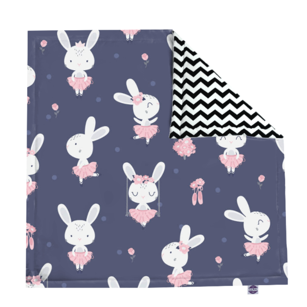 Przygotowaliśmy szereg wzorów bawełny do wyboru – z jednej strony możesz wybrać dowolny motyw dziecięcy np. króliki w szybkich wyścigówkach lub wesołe wróżki. Druga strona maty to tkanina w modnym wzorze chevron w odcieniach czerni i bieli.