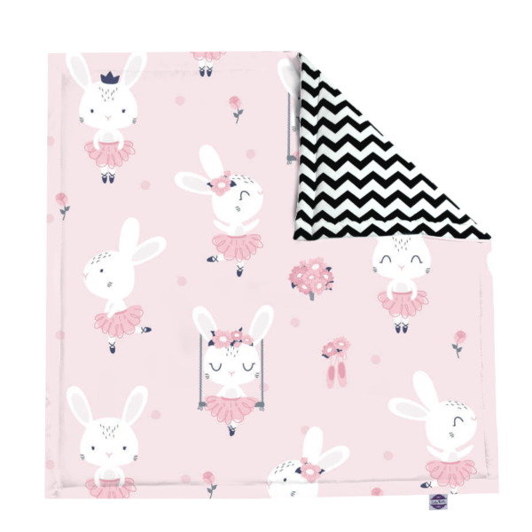 Przygotowaliśmy szereg wzorów bawełny do wyboru – z jednej strony możesz wybrać dowolny motyw dziecięcy np. króliki w szybkich wyścigówkach lub wesołe wróżki. Druga strona maty to tkanina w modnym wzorze chevron w odcieniach czerni i bieli.