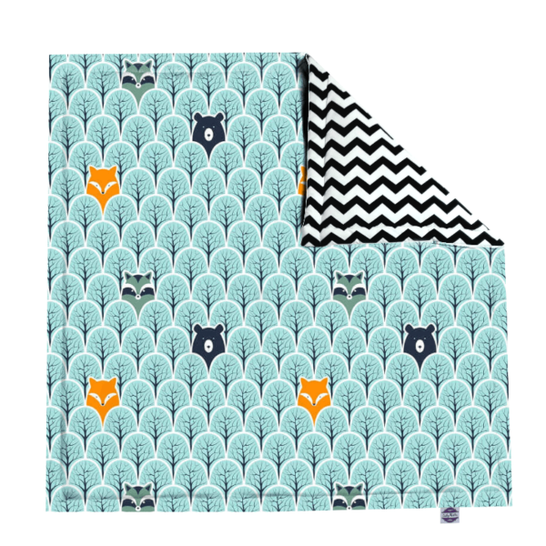 Przygotowaliśmy szereg wzorów bawełny do wyboru – z jednej strony możesz wybrać dowolny motyw dziecięcy np. króliki w szybkich wyścigówkach lub wesołe wróżki. Druga strona maty to tkanina w modnym wzorze chevron w odcieniach czerni i bieli.