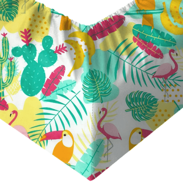 Tukany i flamingi - Prześcieradło Bawełniane z Gumką 90x200 cm