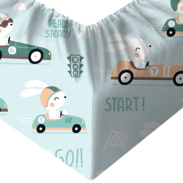 Miętowe króliki - Prześcieradło Bawełniane z Gumką 90x200 cm