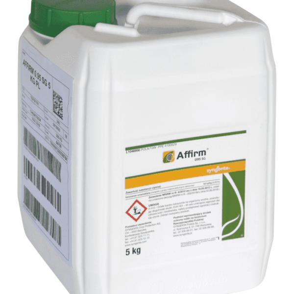 AFFIRM 095 SG 5KGskutecznie chroni uprawy przed gąsienicami motyliłatwy w użyciubezpieczny dla upraw Opis: Affirm 095 SG to środek owadobójczy, występuje w formie granul rozpuszczalnych w wodzie. Środek o działaniu kontaktowym i żołądkowym przeznaczonym do zwalczania gąsienic motyli w uprawach kapustnych takich jak kapusta, kalafior i brokuł.Na roślinie działa wgłębnie oraz translaminarnie. Jest jedynym zarejestrowanym produktem z tej grupy chemicznej do zwalczania gąsienic motyli. Affirm nie wykazuje także odporności krzyżowej z innymi preparatami zwalczającymi gąsienice. Przeznaczony jest do stosowania przy użyciu opryskiwaczy polowych.Sposób użycia: Preparat należy stosować już od najwcześniejszych stadiów rozwoju gąsienic. Odpowiednią ilość preparatu rozpuścić w wodzie i stosować w formie oprysku. Zabieg wykonywać maksymalnie 2 razy na sezon w odstępie minimum 7 dni. Okres karencji jest bardzo krótki wynosi tylko 3 dni. Affirm zastosowany 3-7 dni przed zbiorem nie jest wykrywalny w warzywach.Zawartość substancji czynnych:benzoesan emamektyny (związek z grupy makrocyklicznych laktonów) - 9,5 g/kg (0,95%)Dawkowanie: kapusta, kalafior, brokuł 1.5kg/haŚrodek należy stosować zgodnie z etykietąŚrodki ochrony roślin mogą być nabywane wyłącznie przez osoby pełnoletnie oraz posiadające kwalifikacje wymagane od osób nabywających środki ochrony roślin określone w art. 28. Ustawy o środkach ochrony roślin z dnia 08.03.2013r.(Dz.U.z 2017r. poz.50 z późn.zm.). Ze środków ochrony roślin należy korzystać z zachowaniem bezpieczeństwa. Przed każdym użyciem przeczytaj informacje zamieszczone w etykiecie i informacje dotyczące produktu.