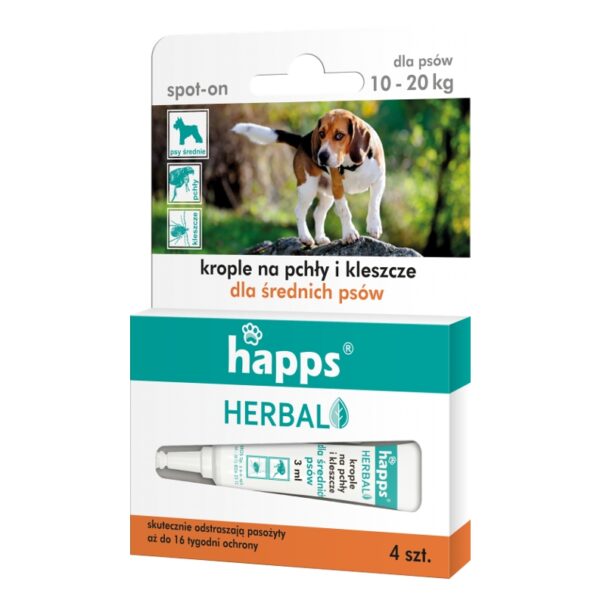 Happs Herbal - krople na pchły i kleszcze dla średnich psów 10-20kg