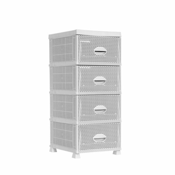 Komoda-regał to idealne rozwiązanie w Twoim domu, jeśli potrzebujesz porządku i organizacji. Komoda ułatwi Ci przechowywanie przeróżnych przedmiotów w Twoim domu. Wykonana z twardego tworzywa sztucznego wygląda klasycznie i elegancko w każdym pomieszczeniu. Pojemna komoda posiada 4 szuflady. Nóżki zapewniają komodzie stabilność, a lekkość przedmiotu ułatwia przenoszenie. Dzięki swojej uniwersalności świetnie sprawdzi się w łazience na przechowywanie akcesoriów łazienkowych, przedpokoju, czy garażu. Dostarczony mebel przeznaczony jest do samodzielnego montażu. Przed przystąpieniem do tego, zaleca się posmarowanie elementów kremem lub mydłem, co znacznie ułatwi proces składania. Do montażu nie potrzebujemy żadnych narzędzi! Dostępne kolory: Cappuccino, Latte, Brąz, Biały Długość 46 cm Szerokość 37,5 cm Wysokość 90 cm