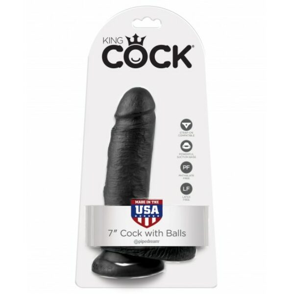 King Cock 7" Cock with Balls Black - dildo