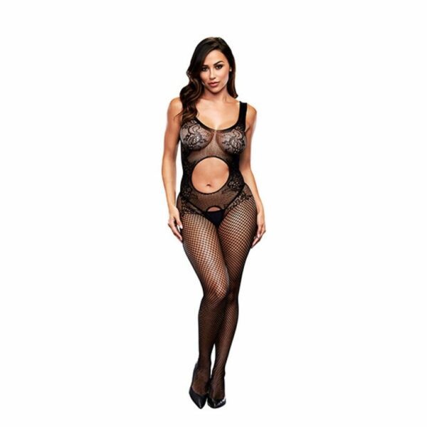 Bodystocking z przejrzystej siateczki.Wycięte w kroku.Elastyczne, opinające ciało.