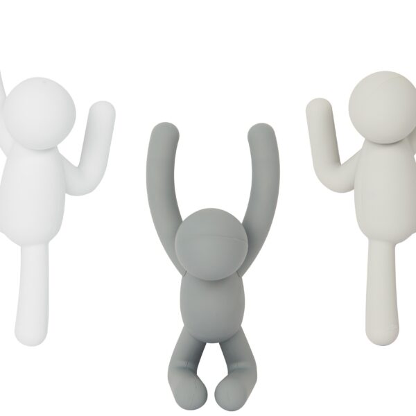 Poznajcie Buddy’ego. To fajny kumpel, który lubi, gdy dużo się dzieje. To naprawdę aktywny typ – wszędzie go pełno. Na wieszakach, ramkach na zdjęcia, na korkociągach, serwetnikach, zaparzaczach do herbaty – nie jest wybredny, więc zobaczycie go wszędzie tam, gdzie tylko projektanci Umbra zdecydują się go zaprosić. To także znany elegant – czasem ubiera się w czerń, czasem w biel, czasem w miętę, a na wielkie wyjścia preferuje złoty lub srebrny frak. Ten niepozorny ludzik skradł już serca odbiorców na całym świecie, nie jest to jednak jedyny z bestsellerowych produktów tej marki. Na nieszablonową wyobraźnię Umbra i zaskakujące nowatorstwem wzornictwo zawsze możecie liczyć, nie tylko na to z Buddy’m w roli głównej.Tutaj dostępny wieszak ścienny Buddy w różnych kolorach (szary, biały, ciemnoszary). Podana waga produktu jest przybliżona i ma charakter jedynie szacunkowy.