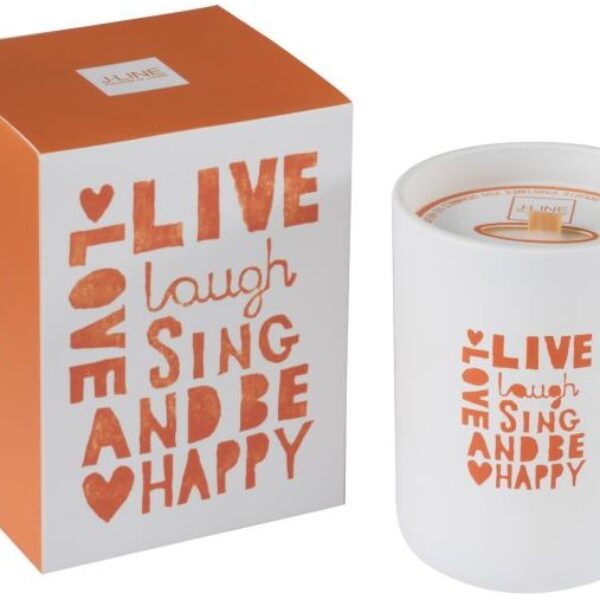 Świeca zapachowa Live, laugh, sing... Ø9x12 cm biało-pomarańczowa