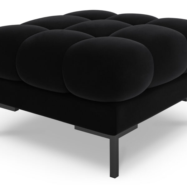 Pufa Mamaia 60x60 cm (czarna Blu 19) to świetny wybór dla wszystkich tych, którym marzą się zarówno piękne, jak i niezwykle wygodne w codziennym użytkowaniu meble do salonu. Ta kwadratowa pufa umiejętnie łączy w sobie inspiracje zaczerpnięte z najbardziej aktualnych trendów wraz z niemałą dawką ponadczasowego wzornictwa, dzięki czemu możesz mieć absolutną pewność, że nie tylko nieprędko ci się znudzi, ale i na długo jeszcze pozostanie w modzie. Ta kwadratowa pufa do salonu bez wątpienia już od pierwszego wejrzenia przykuwa uwagę swoim eleganckim charakterem. Uwagę przyciągają przede wszystkim mocne pikowania, dzięki którym mebel nabiera niezwykle efektownego i dekoracyjnego wyglądu. Całości dopełniają nóżki z metalu, dzięki którym mebel optycznie nabiera lekkości.Przyjemna dla oka estetyka to jednak nie jedyny walor, jaki ta welurowa pufa ma do zaoferowania – projektanci Micadoni starannie zadbali o to, aby również aspekty praktyczno-użytkowe nie zostały tutaj pominięte. Tapicerka pufy Mamaia 60x60 cm wykonana została z bardzo wytrzymałej tkaniny (aż 50000 cykli w teście Martindale’a), dzięki czemu, nawet w przypadku intensywnego użytkowania na co dzień, zachowa świeży wygląd na długie lata. Sprawdzi się zarówno jako dodatkowe miejsce do siedzenia, jak i podnóżek. W razie potrzeby można jej również używać jako stolik kawowy lub pomocniczy – w tym przypadku jednak, z uwagi na tapicerowane siedzisko, dla bezpieczeństwa lepiej ustawić na niej masywną tacę, która dodatkowo ustabilizuje prowizoryczny blat.A może sofa lub narożnik do kompletu potrzebne? Świetnie się składa, bo seria Mamaia to kompleksowa seria mebli wypoczynkowych do salonu. Znajdziesz w niej nie tylko meble w różnych wariantach kolorystycznych, ale i zróżnicowane rozmiary, dzięki czemu z łatwością znajdziesz model odpowiednio dopasowany do metrażu swojego wnętrza i przestrzeni, którą masz do dyspozycji.