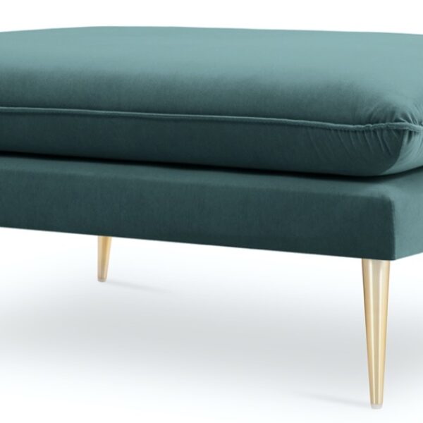 Dodatkowe siedzisko do salonu poszukiwane? Coś nam podpowiada, że pufa Agate 100x80 cm (petrol – nogi złote) ma zatem spore szanse na to, aby okazać się absolutnym strzałem w dziesiątkę. Zwłaszcza że już od pierwszego wejrzenia kusi nie tylko obietnicą wygodnego odpoczynku w komfortowych warunkach, ale i niezwykle eleganckim designem o ponadczasowym charakterze, dzięki czemu do zaoferowania ma także szeroki wachlarz aranżacyjnych możliwości. Nie może zresztą być inaczej, zwłaszcza jeżeli weźmie się pod uwagę, że ta tapicerowana pufa na nóżkach to projekt ekskluzywnej marki Micadoni. Meble do salonu tego producenta dały się już doskonale poznać jako produkty, które zawsze łączą w sobie wyrafinowany styl z niemałą dawką walorów praktycznych i użytkowych.Tapicerka to syntetyczny welur (tkanina Velvet Riv 87), który nie tylko zaliczany jest do ścisłej czołówki wnętrzarskich hitów tego sezonu, ale i może pochwalić się dużą wytrzymałością na codzienne, nawet to najbardziej intensywne użytkowanie. W teście odporności na ścieranie (tzw. test Martindale’a) tkanina ta uzyskała bardzo wysoki wynik aż 100000 cykli ścierania, co stanowi rezultat znacznie powyżej przeciętnej. Należycie zadbano również o znajdujące się pod tapicerką wypełnienie siedziska – do jego wykonania użyta została pianka poliuretanowa o wysokiej sprężystości (gęstość 30 kg/m³) oraz watolina o gramaturze 200 g/m². Całości dopełniają metalowe nóżki o wysokości 20 cm, o stożkowej konstrukcji, subtelnie zwężanej do dołu.W jaki sposób najlepiej zaaranżować pufę Agate 100x80 cm? Równie dobrze, co jako pufa do salonu oferująca dodatkowe miejsce do siedzenia, sprawdzi się również jako wygodny podnóżek. Z sukcesem poradzi sobie też jako pufa do sypialni – ustawiona w nogach łóżkach, stanowić będzie niezwykle stylowy dodatek, choć z łatwością możesz ją też wykorzystać jako eleganckie siedzisko do toaletki.