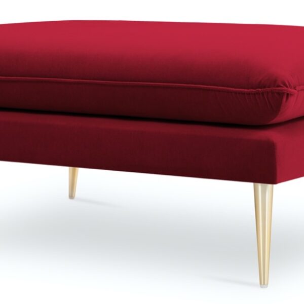 Dodatkowe siedzisko do salonu poszukiwane? Coś nam podpowiada, że pufa Agate 100x80 cm (czerwona – nogi złote) ma zatem spore szanse na to, aby okazać się absolutnym strzałem w dziesiątkę. Zwłaszcza że już od pierwszego wejrzenia kusi nie tylko obietnicą wygodnego odpoczynku w komfortowych warunkach, ale i niezwykle eleganckim designem o ponadczasowym charakterze, dzięki czemu do zaoferowania ma także szeroki wachlarz aranżacyjnych możliwości. Nie może zresztą być inaczej, zwłaszcza jeżeli weźmie się pod uwagę, że ta tapicerowana pufa na nóżkach to projekt ekskluzywnej marki Micadoni. Meble do salonu tego producenta dały się już doskonale poznać jako produkty, które zawsze łączą w sobie wyrafinowany styl z niemałą dawką walorów praktycznych i użytkowych.Tapicerka to syntetyczny welur (tkanina Velvet Riv 61), który nie tylko zaliczany jest do ścisłej czołówki wnętrzarskich hitów tego sezonu, ale i może pochwalić się dużą wytrzymałością na codzienne, nawet to najbardziej intensywne użytkowanie. W teście odporności na ścieranie (tzw. test Martindale’a) tkanina ta uzyskała bardzo wysoki wynik aż 100000 cykli ścierania, co stanowi rezultat znacznie powyżej przeciętnej. Należycie zadbano również o znajdujące się pod tapicerką wypełnienie siedziska – do jego wykonania użyta została pianka poliuretanowa o wysokiej sprężystości (gęstość 30 kg/m³) oraz watolina o gramaturze 200 g/m². Całości dopełniają metalowe nóżki o wysokości 20 cm, o stożkowej konstrukcji, subtelnie zwężanej do dołu.W jaki sposób najlepiej zaaranżować pufę Agate 100x80 cm? Równie dobrze, co jako pufa do salonu oferująca dodatkowe miejsce do siedzenia, sprawdzi się również jako wygodny podnóżek. Z sukcesem poradzi sobie też jako pufa do sypialni – ustawiona w nogach łóżkach, stanowić będzie niezwykle stylowy dodatek, choć z łatwością możesz ją też wykorzystać jako eleganckie siedzisko do toaletki.