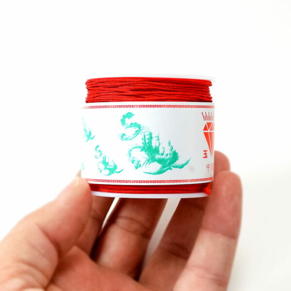 Sznurek nylonowy w kolorze czerwonym, mocny, nierozciągliwy, połyskliwy. Dzięki swojej wytrzymałości rewelacyjnie sprawdzi się w technice makramy. Ten sznurek może być alternatywa dla żyłki/linki kiedy chcemy wykonać naszyjnik z dużych i ciężkich kamieni. Topliwy po delikatnym podgrzaniu łatwiej przejdzie przez otwór kamienia.
