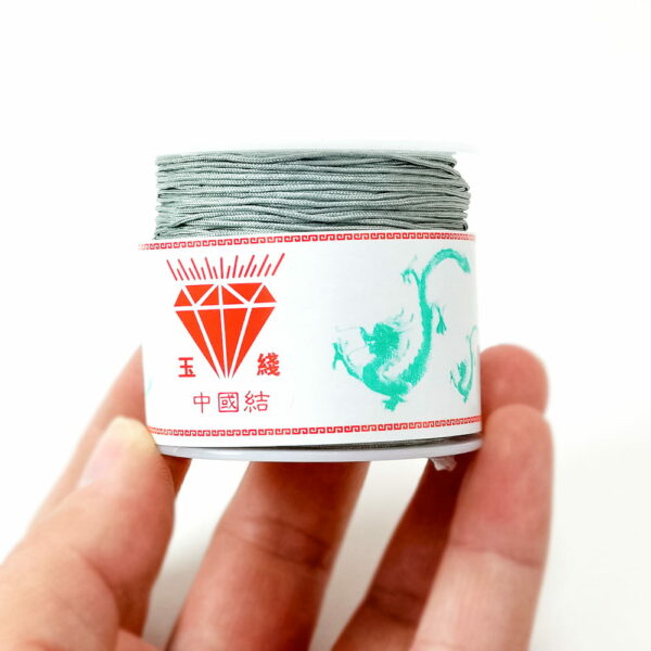 Sznurek nylonowy w kolorze jasno szarym, mocny, nierozciągliwy, połyskliwy. Dzięki swojej wytrzymałości rewelacyjnie sprawdzi się w technice makramy. Ten sznurek może być alternatywa dla żyłki/linki kiedy chcemy wykonać naszyjnik z dużych i ciężkich kamieni. Topliwy po delikatnym podgrzaniu łatwiej przejdzie przez otwór kamienia.