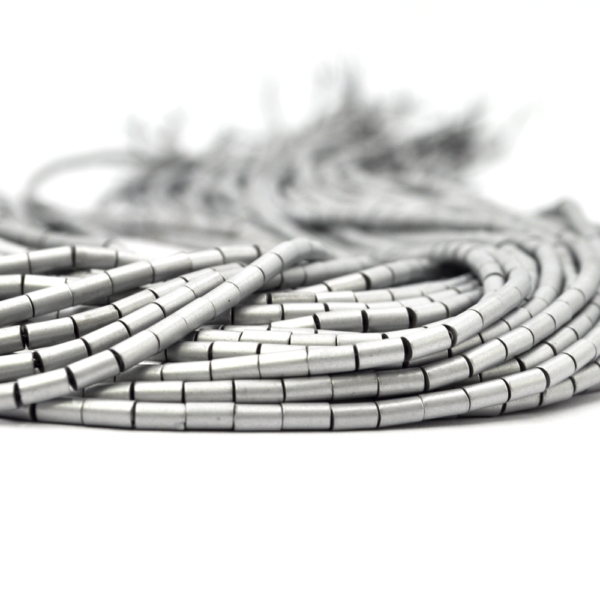 Hematyt srebrny matowy walec 2x4mm [sznur 40 cm]