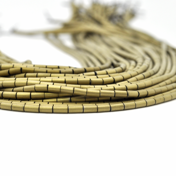 Hematyt jasne złoto matowy walec 2x4mm [sznur 40 cm]