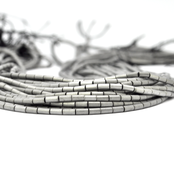 Hematyt ciemne srebro matowy walec 2x4mm [sznur 40 cm]
