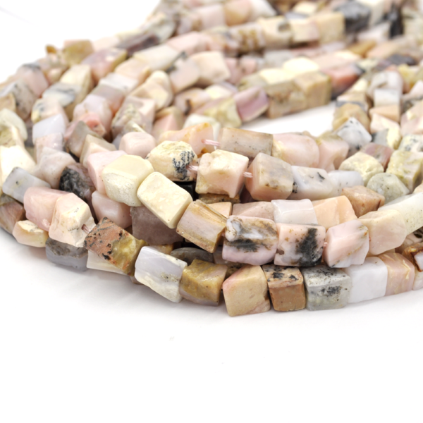 Naturalny opal różowy, prostopadłościan nieregularny. Sznur wybierany jest losowo. Cena dotyczy jednego sznura o długości ok. 39cm. Kamień naturalny idealnie nadający się na przekładki lub do naszyjników.