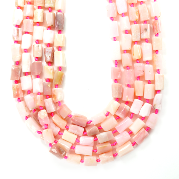 Opal różowy naturalny, nieregularna bryła szlifowana.Sznur wybierany jest losowo. Cena dotyczy jednego sznura o długości ok. 42 cm. Polecamy do tworzenia bransoletek i naszyjników. Sznur supełkowany.