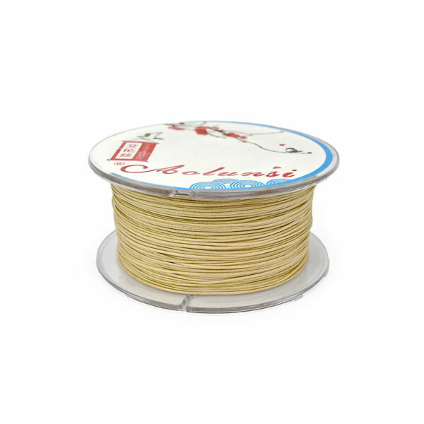 Sznurek nylonowy odcienie koloru beżowego, mocny, lekko elastyczny, plastyczna forma, połyskliwy. Dzięki swojej wytrzymałości rewelacyjnie sprawdzi się w technice makramy. Polecamy także do tworzenia naszyjników z dużych i ciężkich kamieni. Po delikatnym podgrzaniu, sznurek topi się, co znacznie ułatwia pracę i pozwala uformować pożądany kształt końca sznurka, dzięki temu nawlekanie kamieni jest znacznie prostsze! Cena dotyczy jednej szpuli