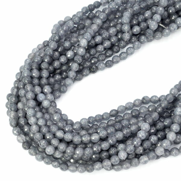 Jadeit, kula fasetowana. Kamień lekko transparentny w odcieniach szarości.Sznur wybierany jest losowo. Cena dotyczy jednego sznura o długości ok. 37 cm. Polecamy do tworzenia bransoletek i naszyjników.