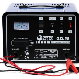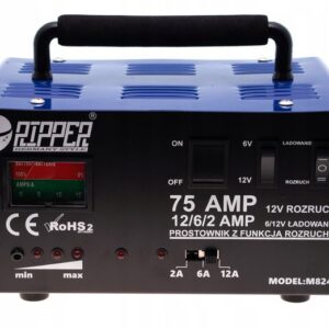 Prostownik z rozruchem RipperOferowane urządzenie wykonane zostało z bardzo dobrych podzespołów i zostało wyposażone w soldną metalową obudowę.Model ten dostosowany jest do ładowania prądem o napięciu 6V i 12V.Końcówki przewodów wyposażone są w mocne zaciski, które gwarantują dokładnośc ładowania.Urządzniem możemy łądować wszytskie akumulatory kwasowo-ołowiowe 12V DANE TECHNICZNEStan: NowyProducent: RipperNapięcie zasilające: 230 VNapięcie wyjściowe: 6 V / 12 VPrąd ładowania max: 15 APrąd rozruchu: 100 AObsługiwane akumulatory: 60 - 200 ahCzęstotliwość: 50/60HzPrąd ładowania: 2,5- 15APobór prądu: 400WWaga netto: 5,5 KGZESTAW ZAWIERAKlemy przyłączenioweWskaźnik diodowyWskaźnik analogowyPrzełącznik rozruch/ładowaniePrzełącznik wyboru napięciaWłącznik zasilania