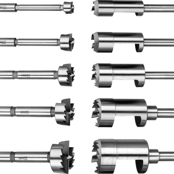 Wysokiej jakości zestaw sękarek do drewna producenta Condor został wykonany z wysokiej jakości stali, przeznaczone do materiałów drewnianych i drewnopochodnych.Sękownik służy do wycinania otworów o odpowiedniej średnicy. Idealne rozwiązanie do wykrawania czopów, które wchodzą w otwór wykrojony przez sękownik.Sękarka do drewna to najlepsze rozwiązanie do pozbywania sęków lub innych widocznych defektów deski, zastępując je odpowiednim wybranym materiałem.Flekowniki stosuje się do wykrawania czopów, które wchodzą w otwór wykrojony przez sękownik. Cały zestaw został zapakowany w drewniane, solidne opakowanie.DANE TECHNICZNEProducent: CondorStan: NowyŚrednica: 15, 20, 25, 30, 35 mm / x 2Ilosć w zestawie: 10 sztuk