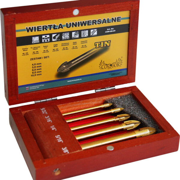 WIERTŁA UNIWERSALNE TYTANOWE 4,0-10,0 mm 5 szt