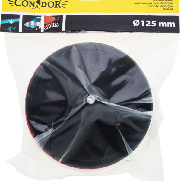Multidysk o średnicy 125 mm producenta Condor wyposażony w rzep umożliwiający mocowanie osprzętu do szlifowania lub polerowania.Dzięki grubej gąbce praca jest lekka, komfortowa podzas pracy na nierównej powierchnii.W zestawie gąbka, która mocnowana jest na rzep, na którą można zamocować krążki szlifierskie, filce lub futerka.Współpracuje z wiertarkami.DANE TECHNICZNEProducent: CondorStan: NowyŚrednica: 125 mmTrzpień: 6 mm