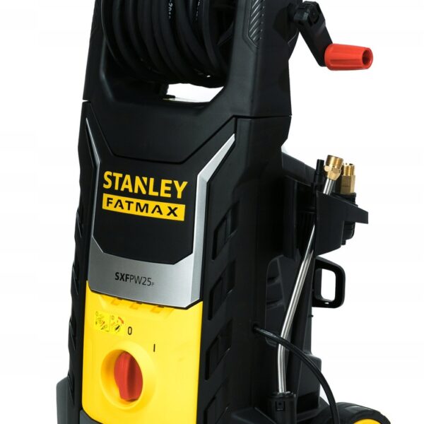 Myjka ciśnieniowa fatmax SXFPW25PE StanleyMyjka ciśnieniowa Stanley to niezastąpione urządzenie w każdym domu i ogrodzie. Doskonale nadaje się do szybkiego i efektywnego czyszczenia różnego rodzaju zabrudzeń. Wysoka jakość wykonania sprawia, że urządzenie jest niezwykle trwałe.Zaletą myjki są jej stosunkowo niewielkie rozmiary, dzięki czemu nie zajmuje wiele miejsca oraz może być przechowywana w małych pomieszczeniach. Skuteczność czyszczenia myjki wysokociśnieniowej jest wypadkową ciśnienia i wydatku wody. Wydajność na poziomie 450 litrów/h gwarantuje lepsze odspajanie uporczywego brudu i krótszy proces czyszczenia, co pozwala na efektywne mycie większych powierzchni.DANE TECHNICZNEStan: NowyMaksymalne ciśnienie: 150 barMaksymalny przepływ wody: 7,5 l/min / 450 l/hMoc: 2500 WSilnik indukcyjnyZasilanie: 220-240 V (50Hz)Pompa mosiężnaSystem Aqua Stop: automatyczny zawór bezpieczeństwaMaksymalna temperatura wlotowa wody: 50^o^CMaksymalne ciśnienie wlotowe wody: 1 barSamozasysanie wody: możliwość zasilania myjki z sieci wodociągowej jak również z innego zbiornika wodyDługość węża wysokociśnieniowego: 10 mWbudowany pojemnik na detergentŚrednica kół: 20 cmGumowane kołaPoziom mocy akustycznej: 93 dB(A)Długość przewodu elektrycznego: 5 mWaga: 30 kgWYPOSAŻENIEPistolet spryskujący z szybkozłączkąProfesjonalna lanca z dyszą rotacyjnąProfesjonalna lanca z dyszą regulowanąWąż wysokociśnieniowy wzmocniony 10 mZwijacz na wążWbudowany filtr wodyWbudowany pojemnik na detergentyUchwyt na pistoletNarzędzie do oczyszczania dyszy (znajduje się w instrukcji obsługi)
