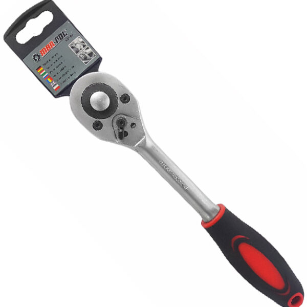 GRZECHOTKA 1/4" PROFI MARPOLSolidna grzechotka 1/4" wykonana ze stali CrV(Chromowo-Vanadowa), która gwarantuje jej wytrzymałość i odporność na uszkodzenia.Posiada ergonomiczną gumową rączkę zapobiegającą wyślizgnięciu, przycisk do wypychania nasadek oraz wygodny przełącznik obrotów grzechotki.DANE TECHNICZNE:Materiał wykonania: stal CrV Rozmiar: 1/4"